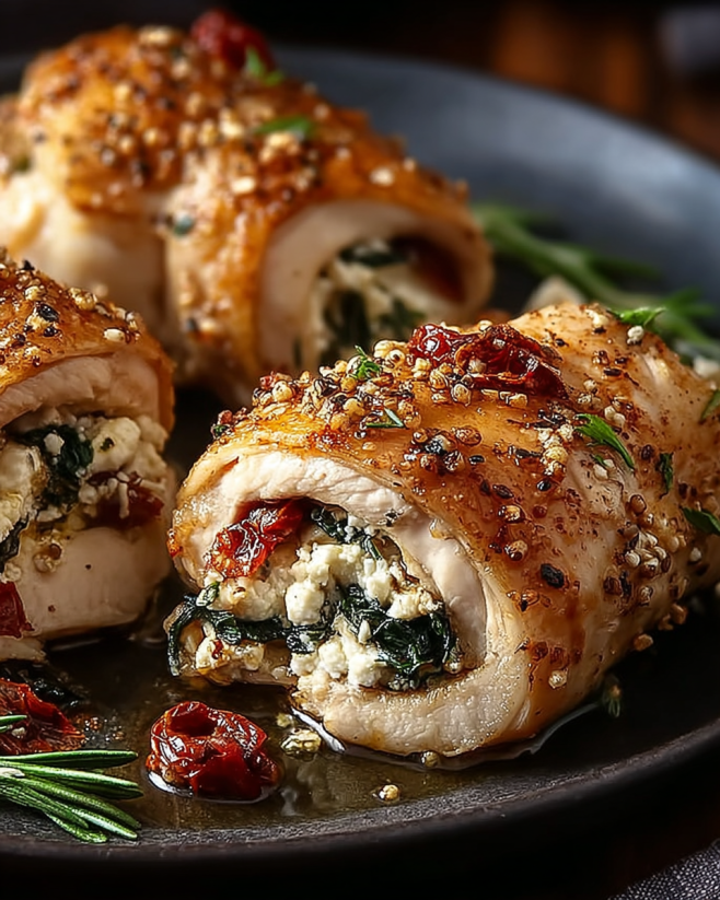 Gefüllte Hähnchenröllchen Rezept für ein köstliches Abendessen.